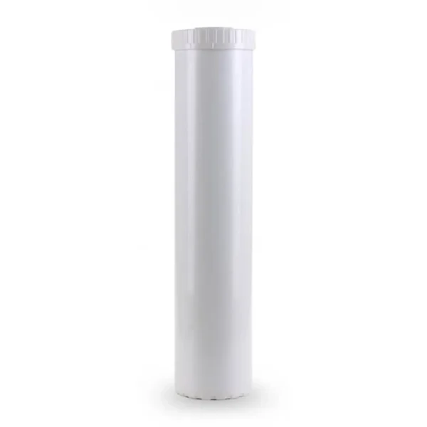 Cartucho vacío que puede llenarse con carbón activado, resinas, KDF u otros medios filtrantes.