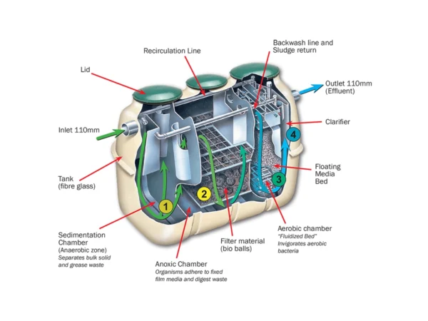 Planta de tratamiento de agua residual doméstica compacta desde 1.7 m3/día hasta 15.14 m3/día. Las presentaciones tienen un peso de 210 kg hasta 1,700 kg.