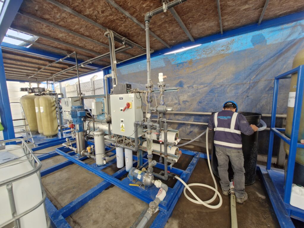 - Dosificación Química: Ajuste de pH y dosificación de anti-incrustantes (inhibidores de scale) para proteger contra incrustaciones de sílice y sulfatos.